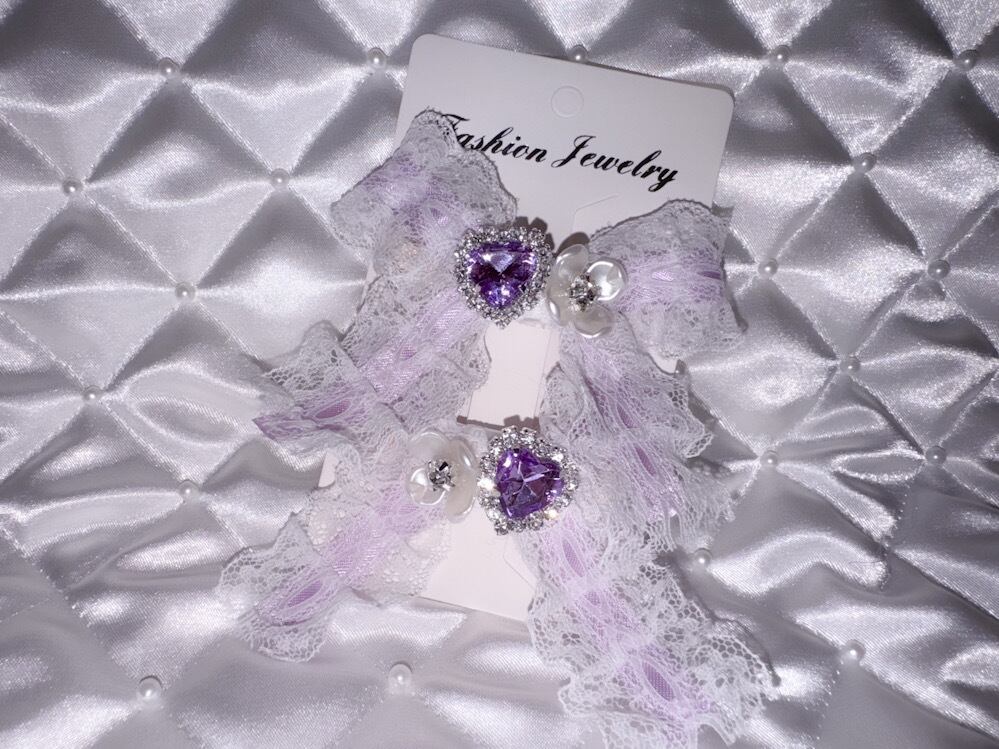 レースとお花ビジューを合わせた春っぽいリボンです。お好みのヘアスタイルに合わせてご利用いただけます!