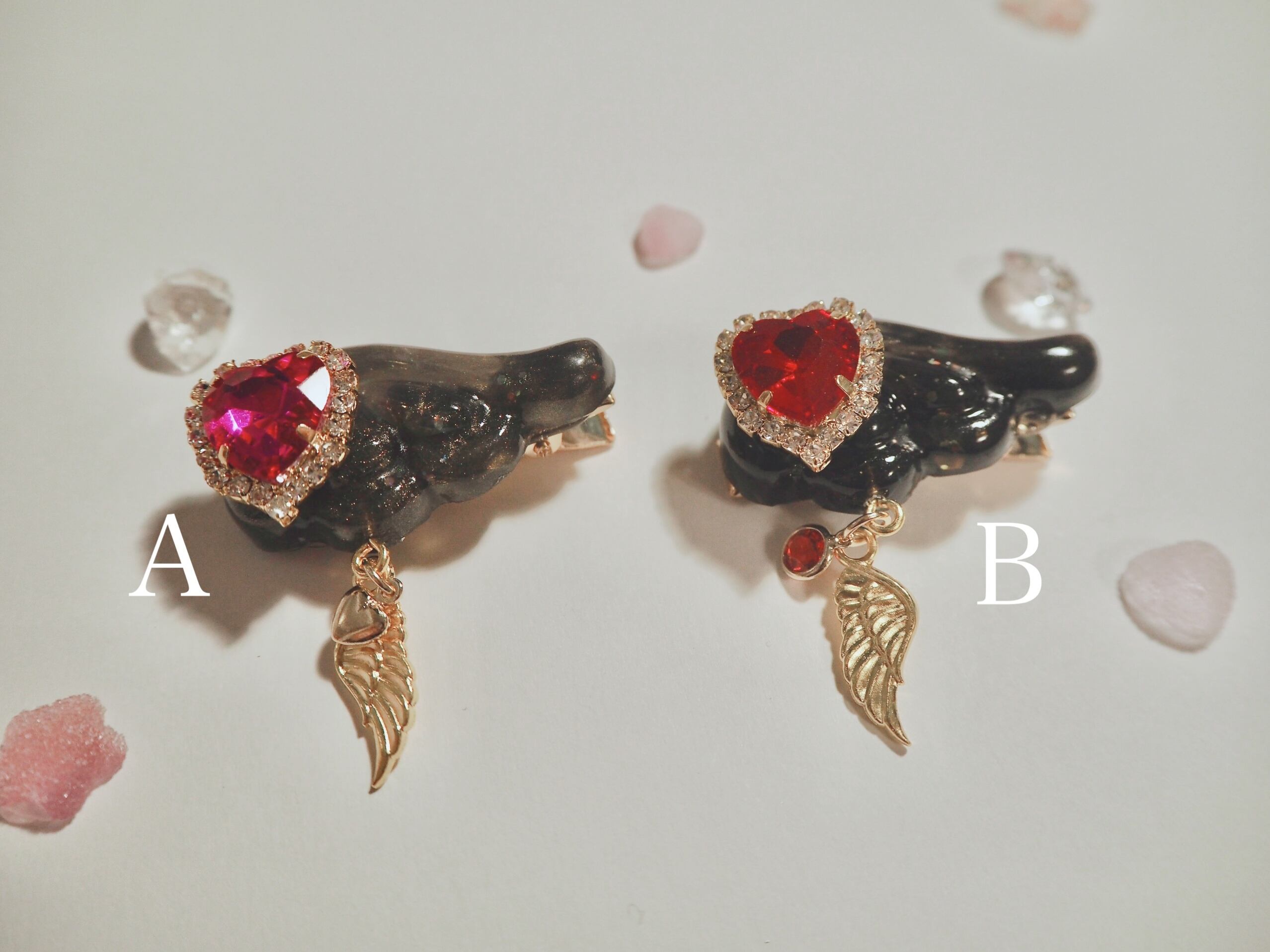 パステル 淡色 透明 ギフト プレゼント オリジナル 天使 地雷系 羽 ピンク かわいい 人気 オシャレ ヘアピン 黒 ゆめかわ 赤