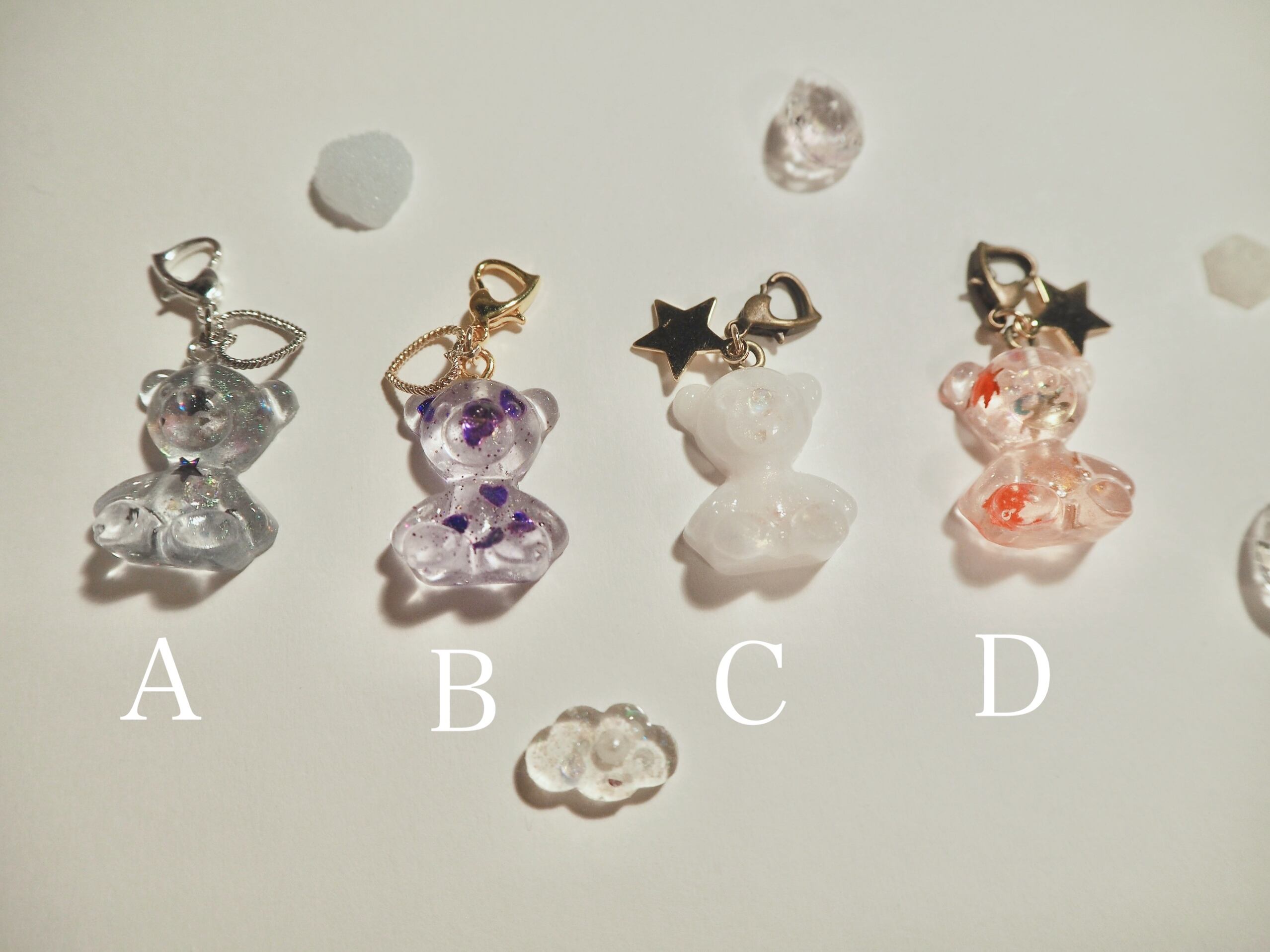 淡色 透明 ギフト プレゼント オリジナル くま かわいい クマ 天使 ネックレス ゆめかわ 紫 水色 秋 青 楓 カエデ 白 マスクチャーム キーホルダー