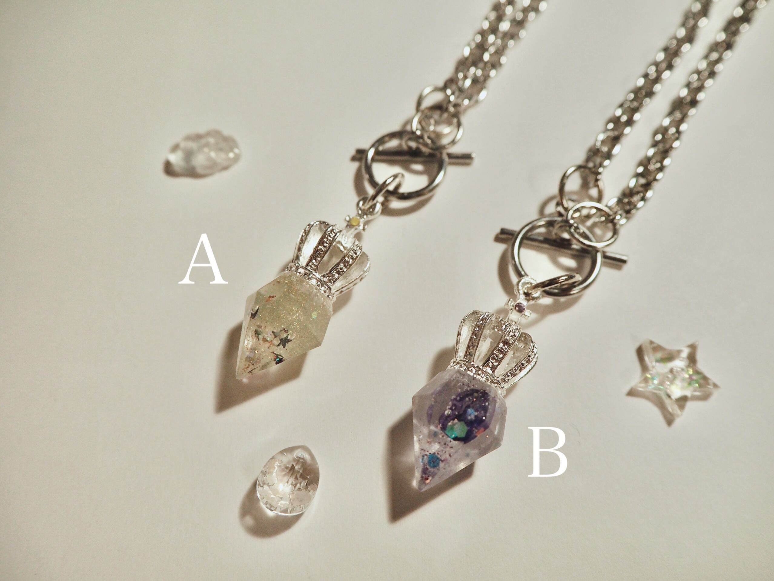 クリスタル 淡水パール 淡色 ブルー 青 紫 ライラック 黄色 星 月 メンズ 透明 ギフト プレゼント オリジナル ネックレス レジン 王冠 人気