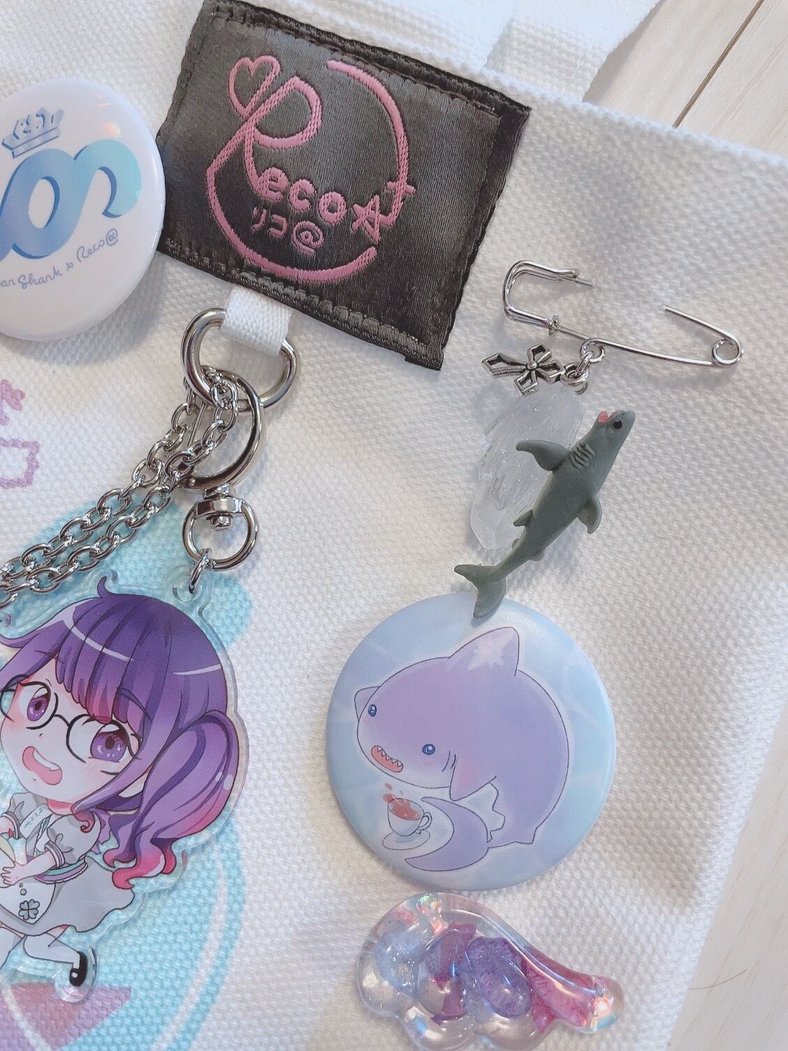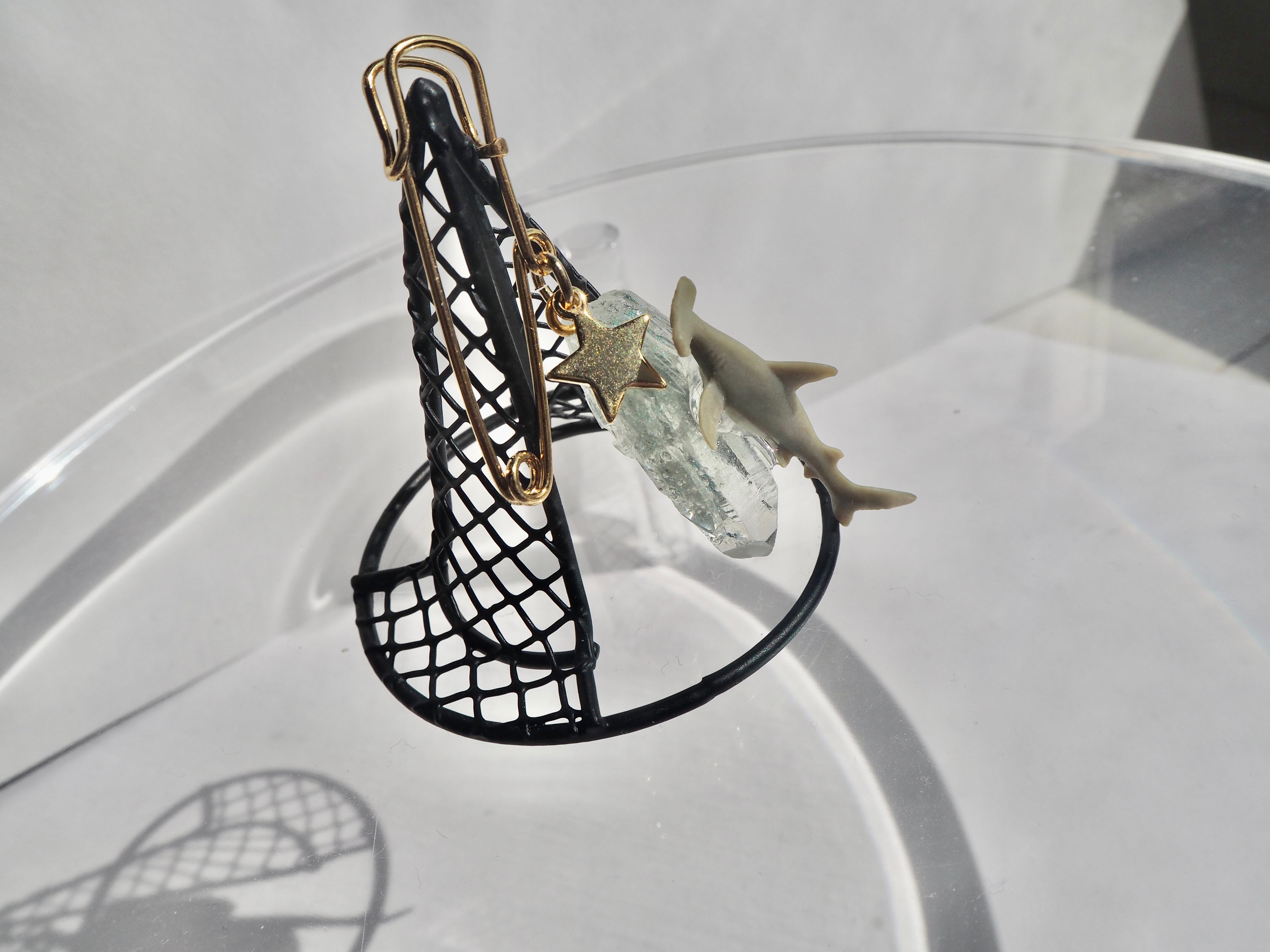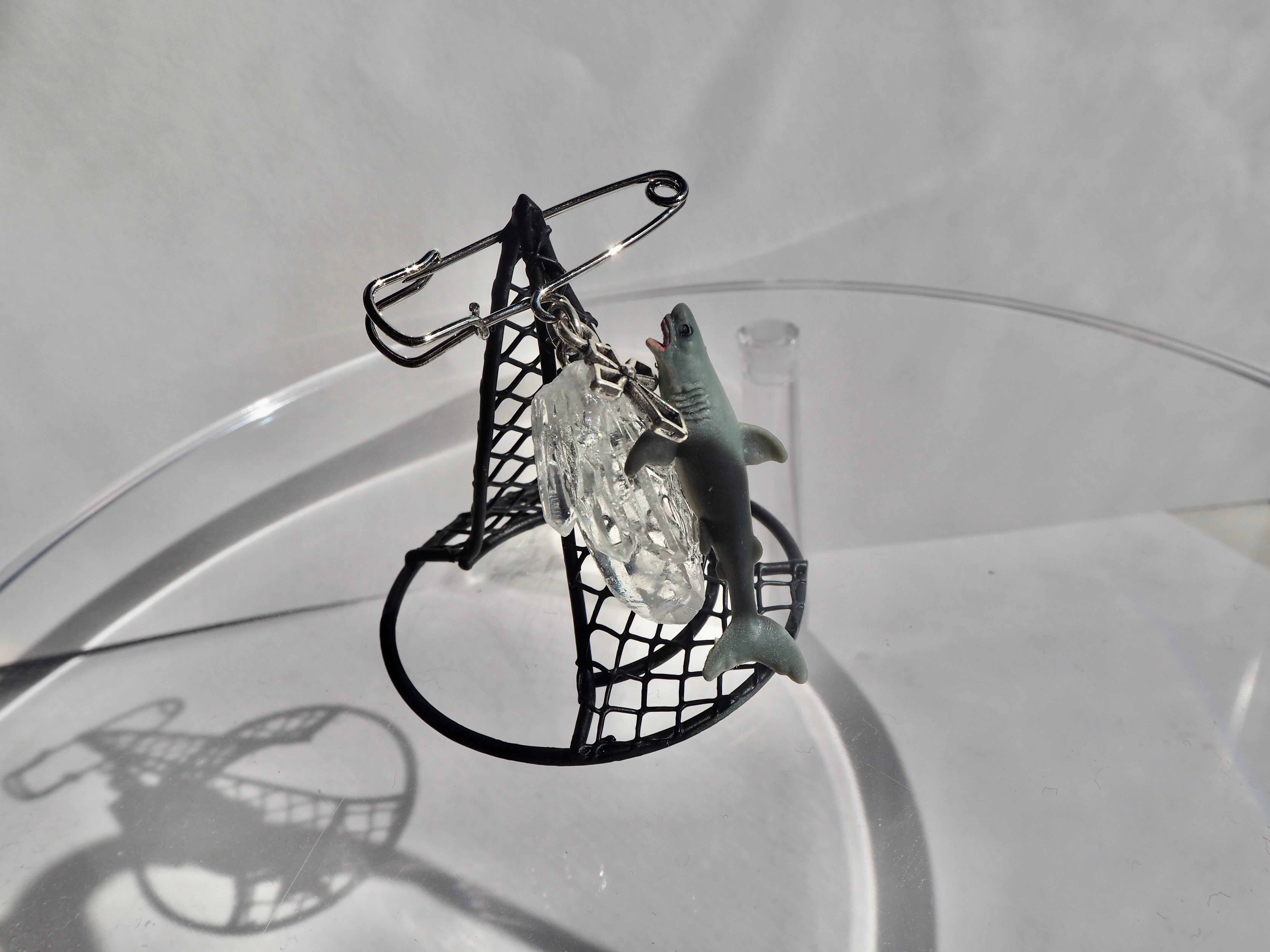 夜空 空色 淡色 ブルー 青 水色 透明 ギフト プレゼント オリジナル ピン ブローチ サメ 海 鉱石