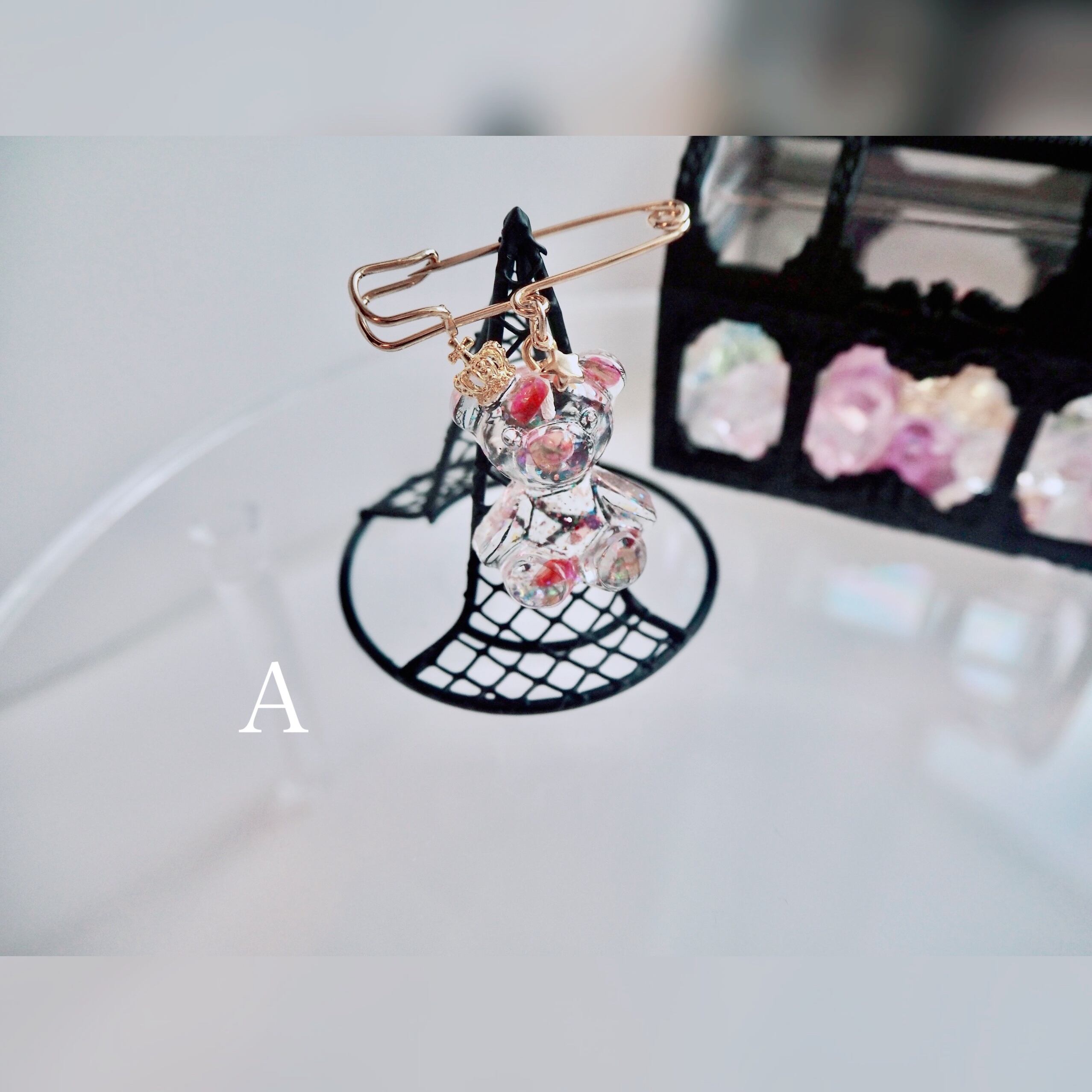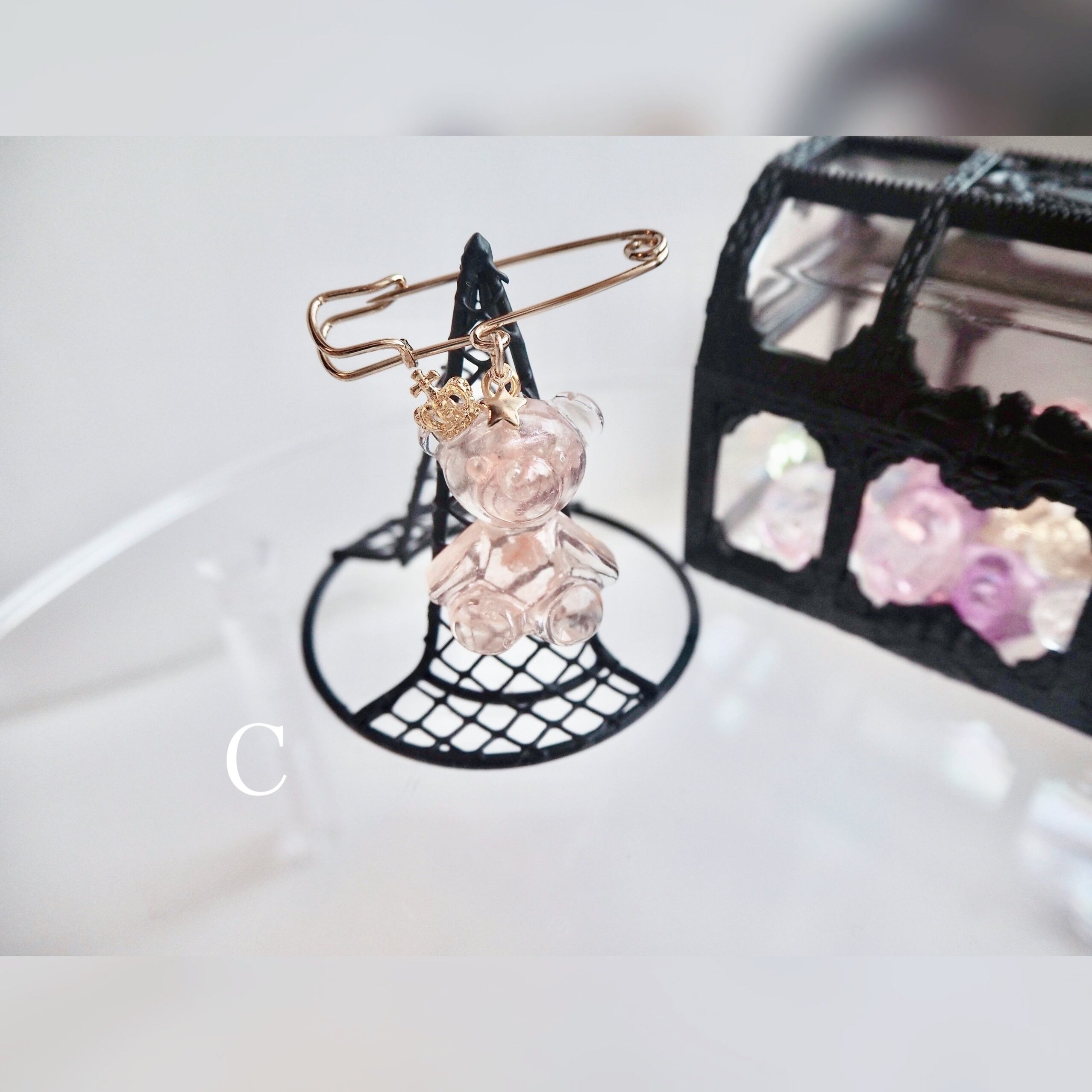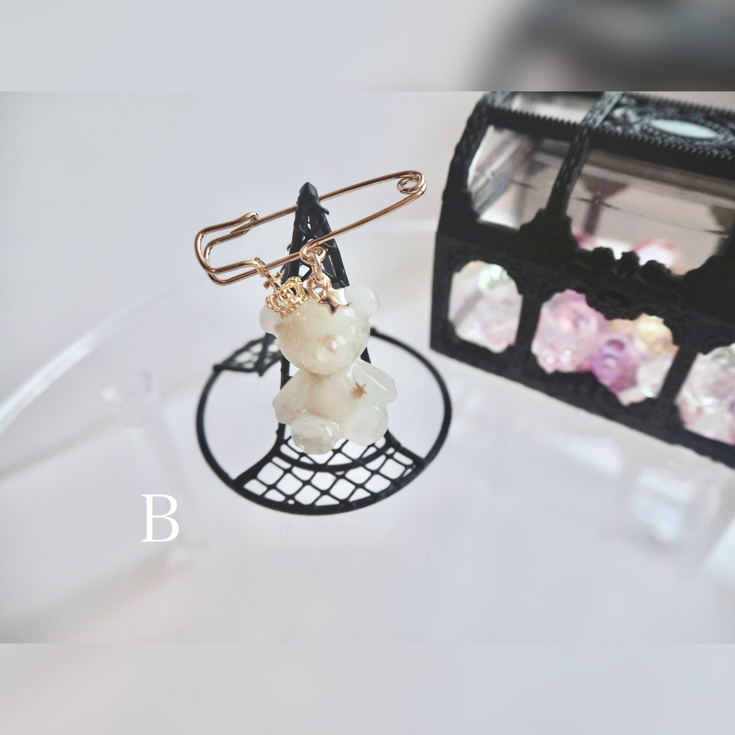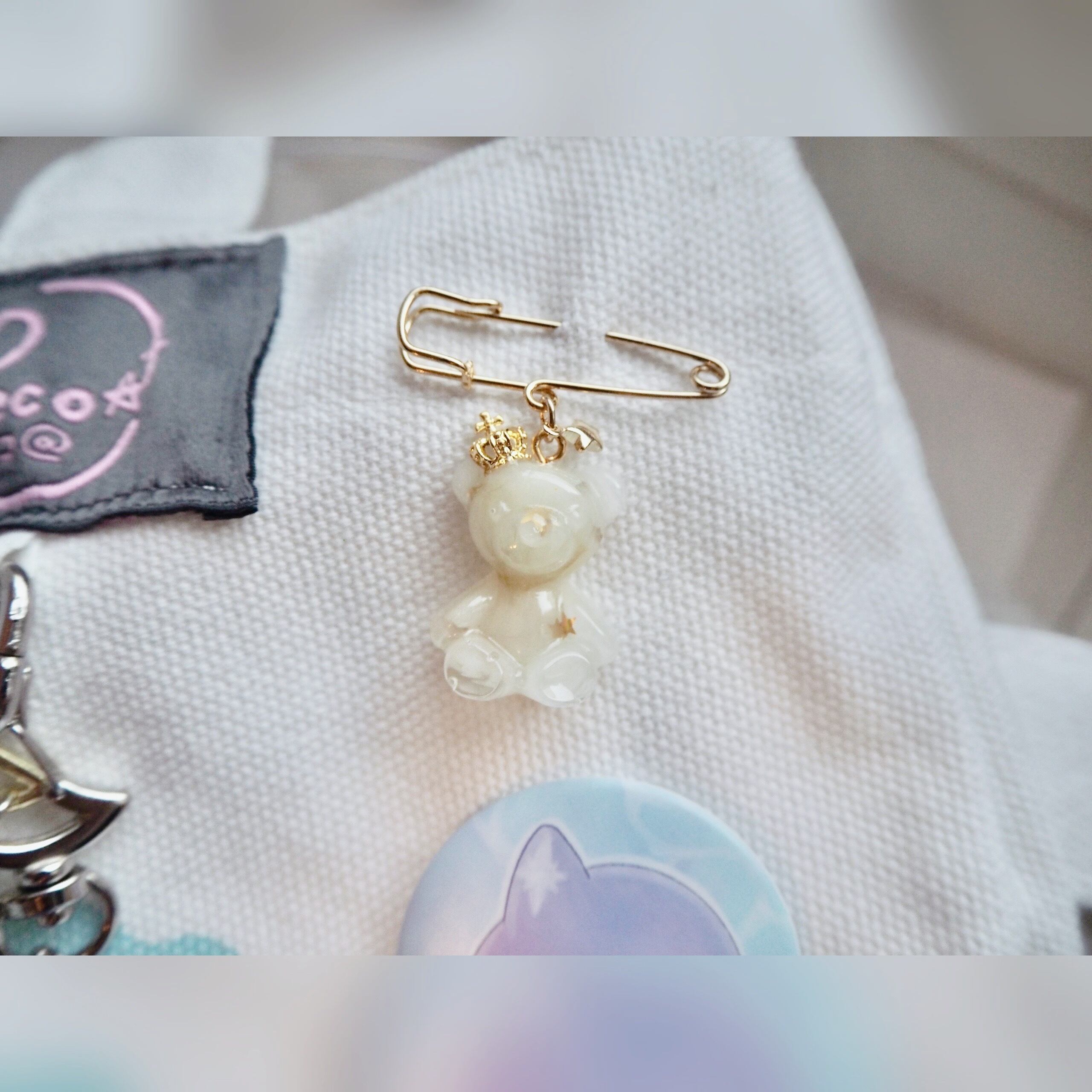 淡色 透明 ギフト プレゼント オリジナル くま かわいい クマ 天使 氷 ピン ブローチ ゆめかわ 黄色 白 赤 オレンジ 金 銀 星 月 王冠