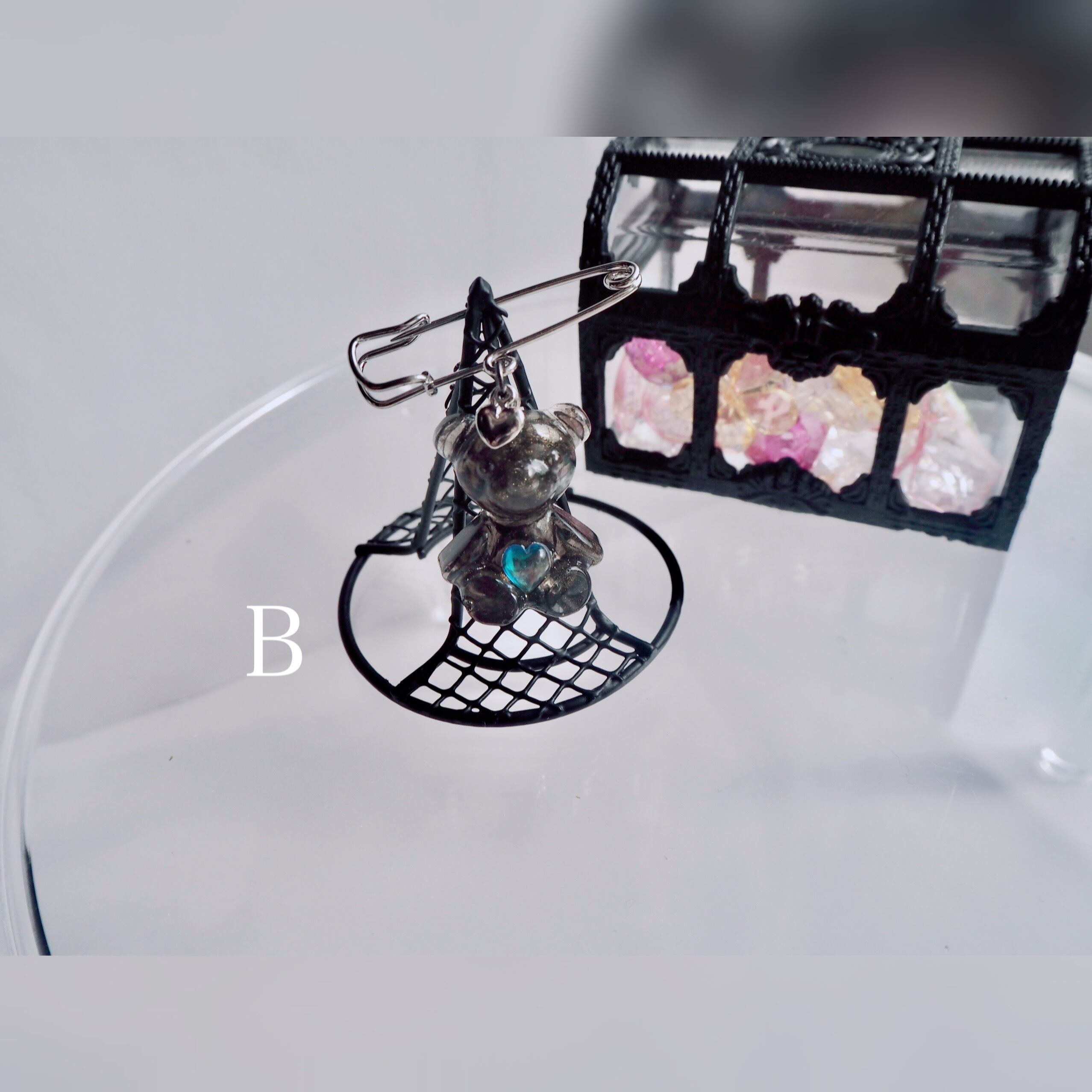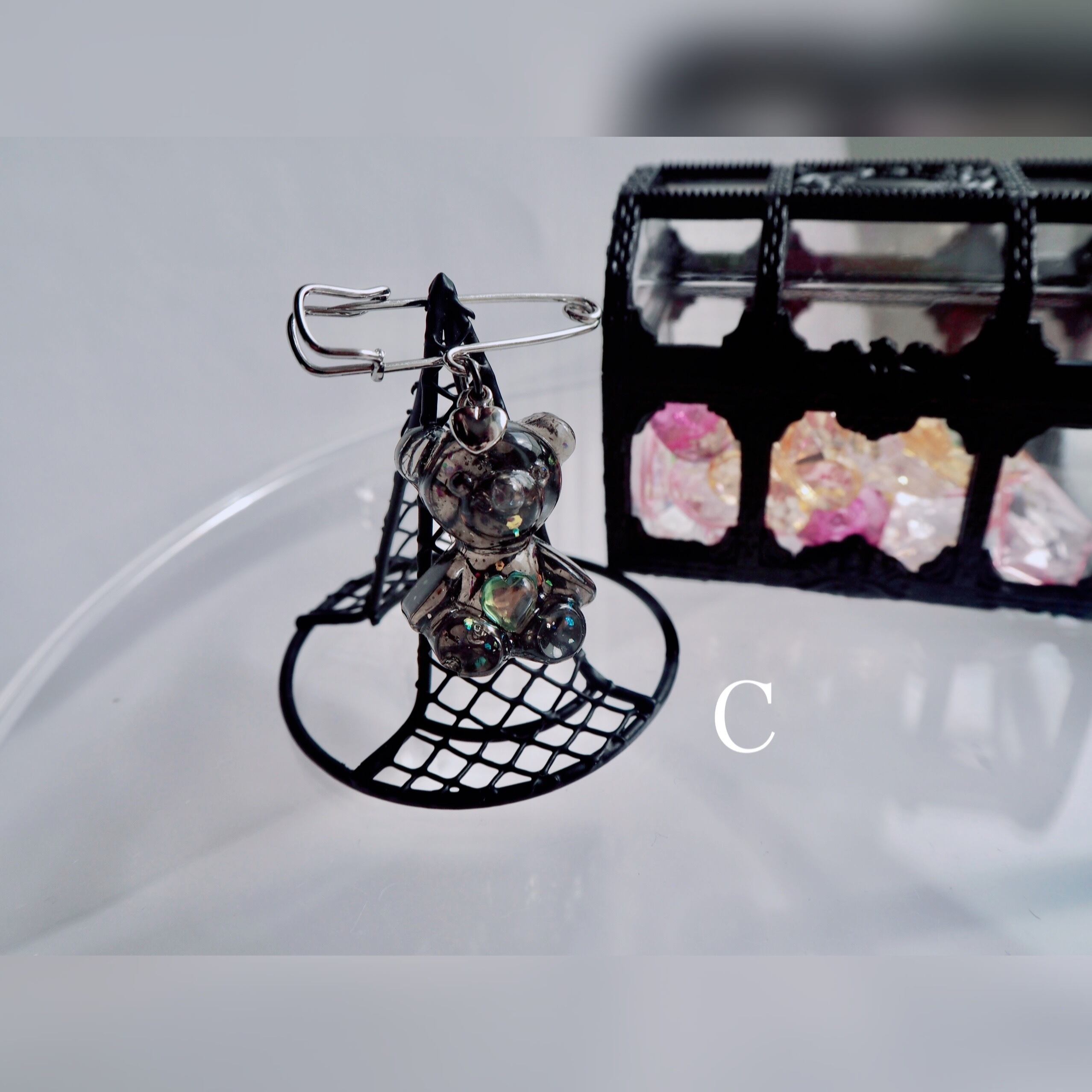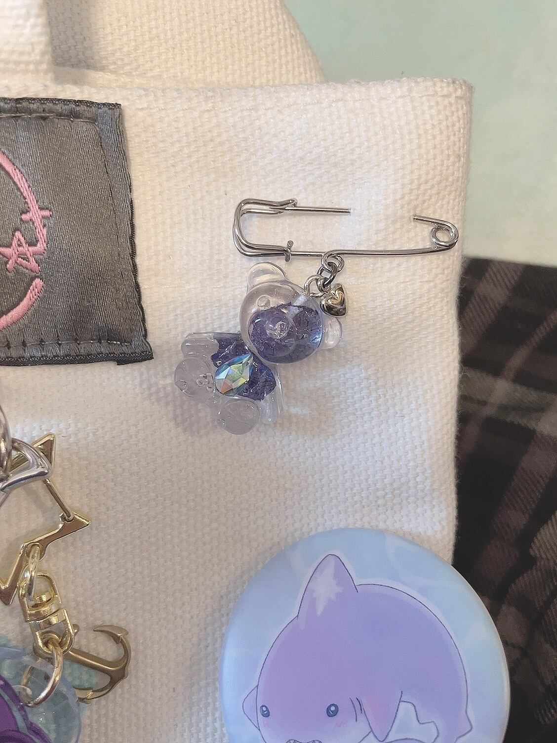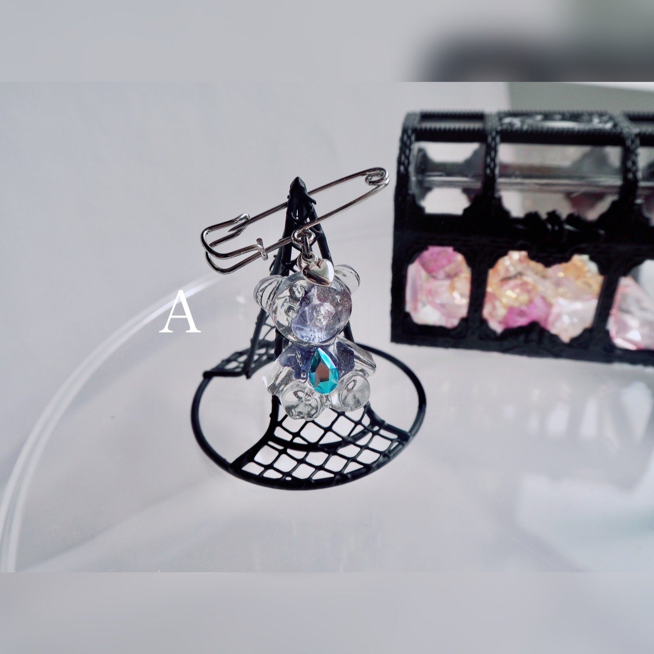淡色 透明 ギフト プレゼント オリジナル くま かわいい クマ 天使 氷 ピン ブローチ ゆめかわ 黒 金 銀 星 月 青 紫 雫