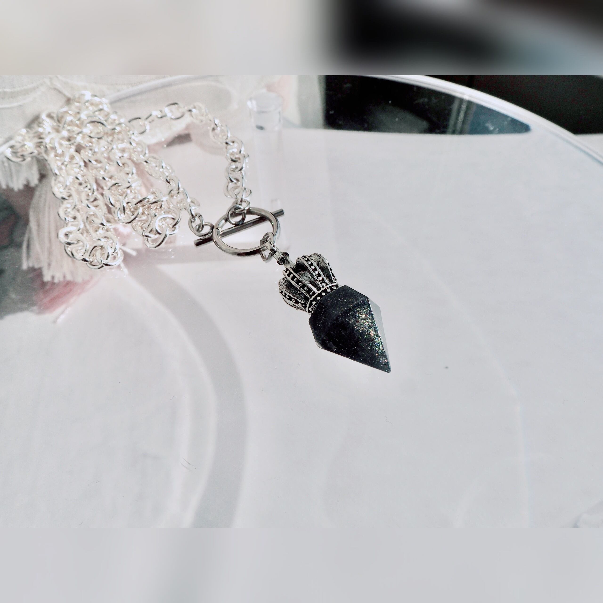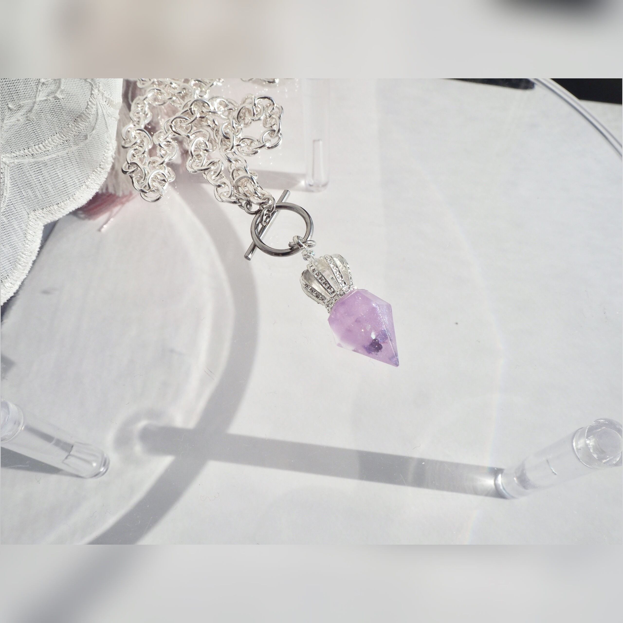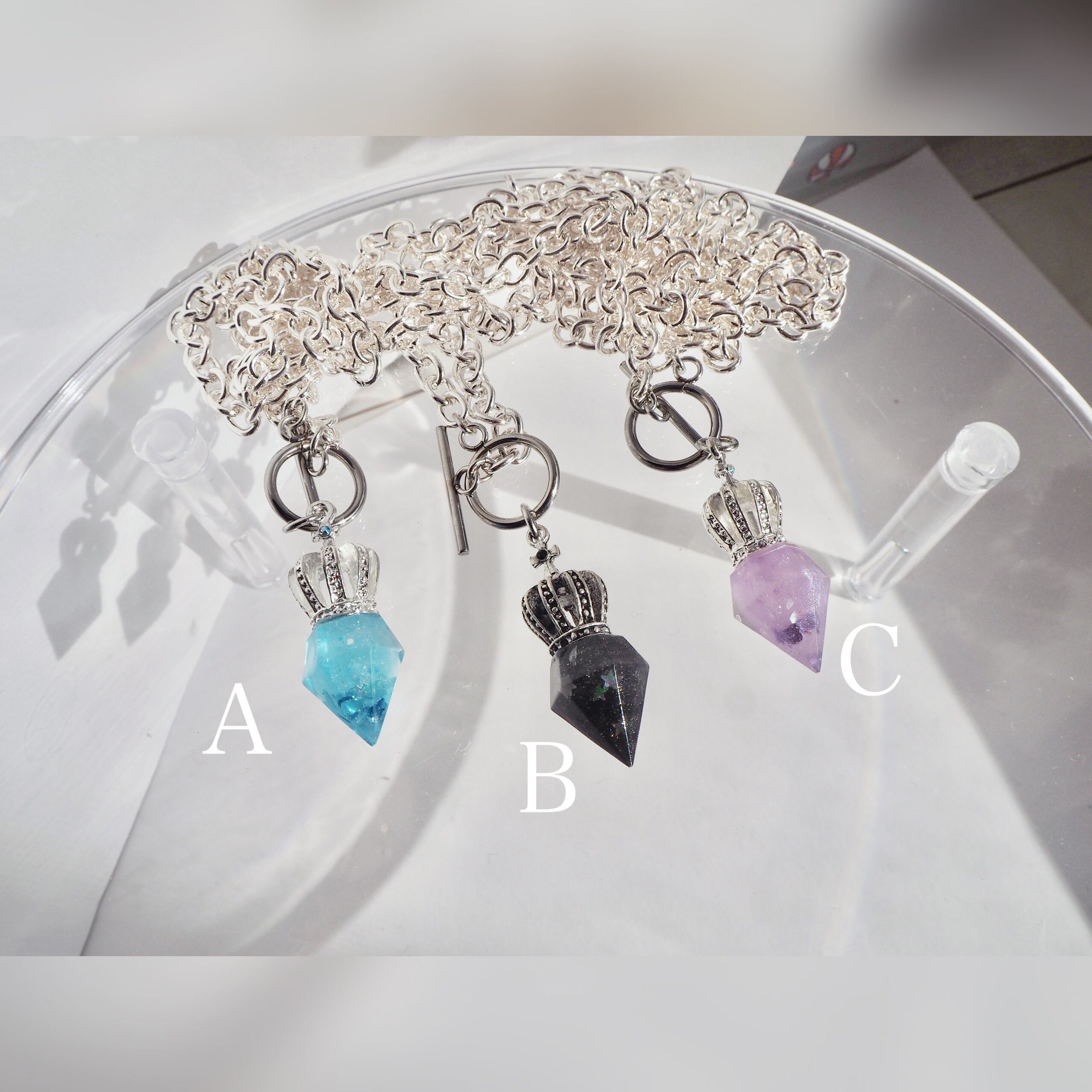 クリスタル 淡水パール 淡色 ブルー 青 紫 ライラック 黒 星 月 メンズ 透明 ギフト プレゼント オリジナル ネックレス レジン 王冠 人気