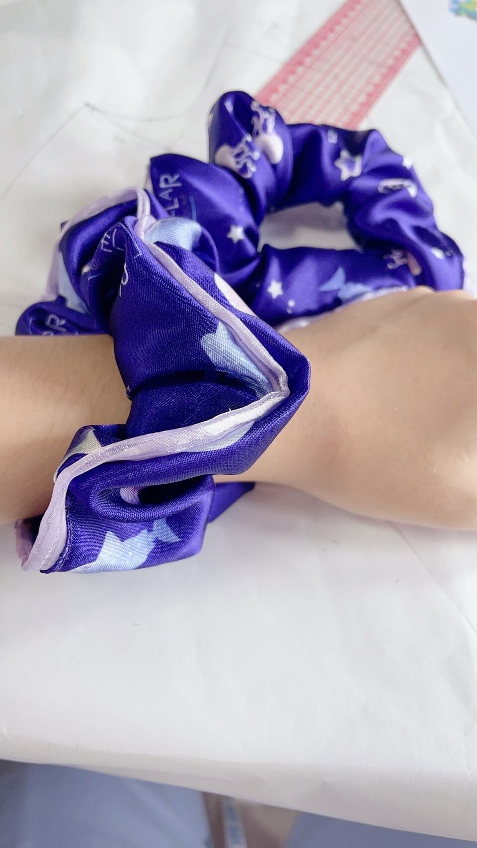 淡色 ブルー 青 紫 白 水色 海 サメ シュシュギフト プレゼント オリジナル 人気 タイ