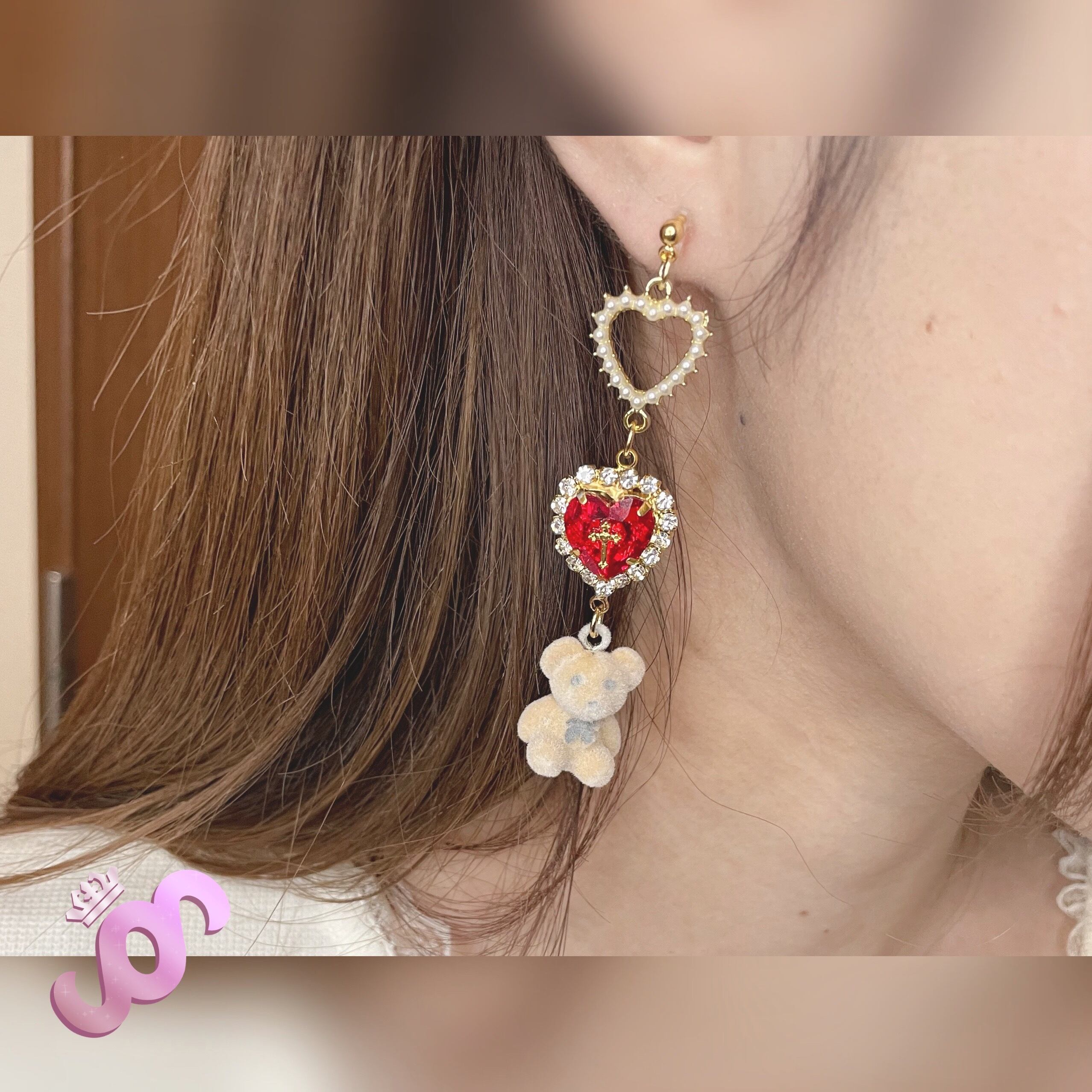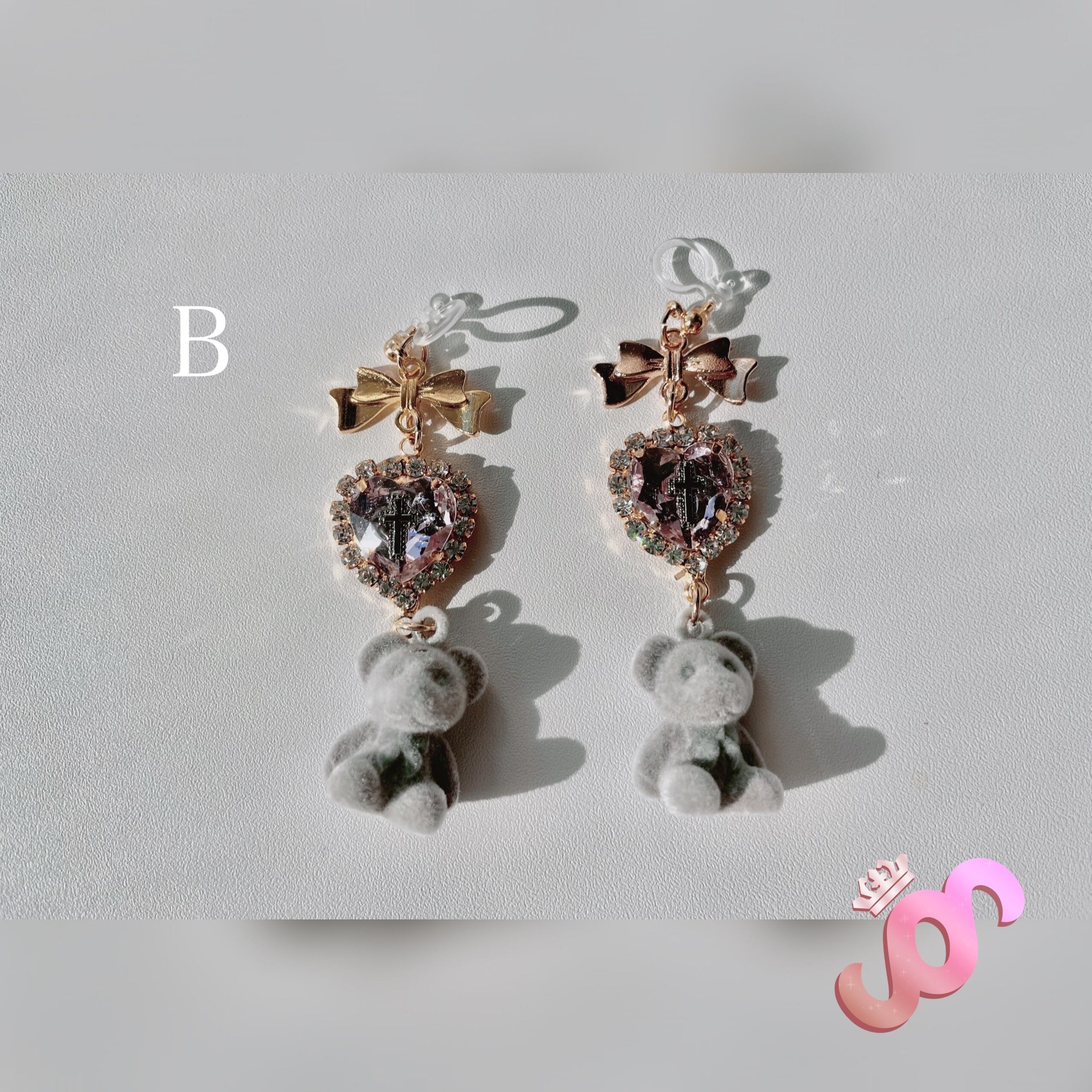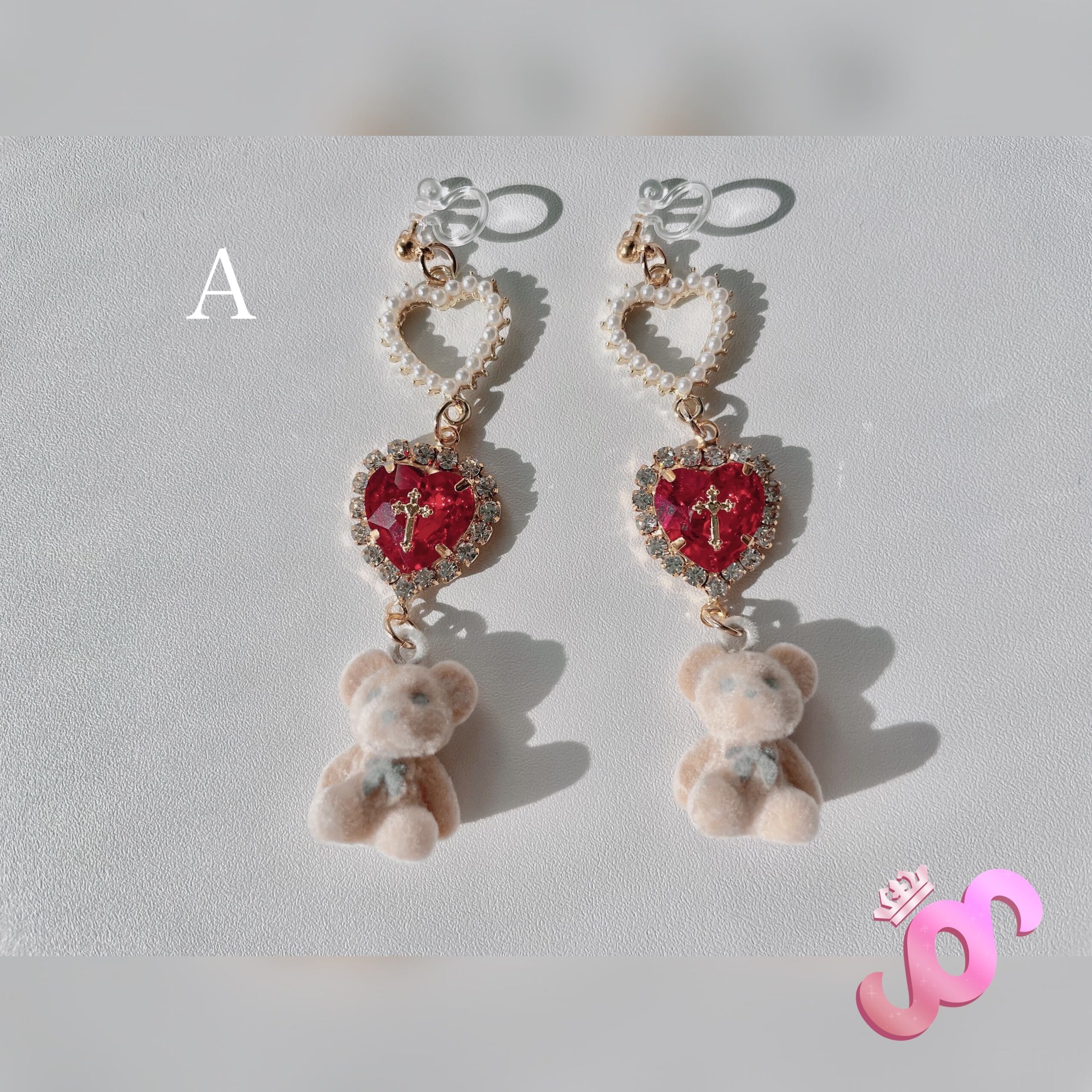 パステル 淡色 透明 ギフト プレゼント オリジナル かわいい 人気 オシャレ 白 ゆめかわ 金 ピンク 赤 ピアス イヤリング ハート くま クマ 十字架