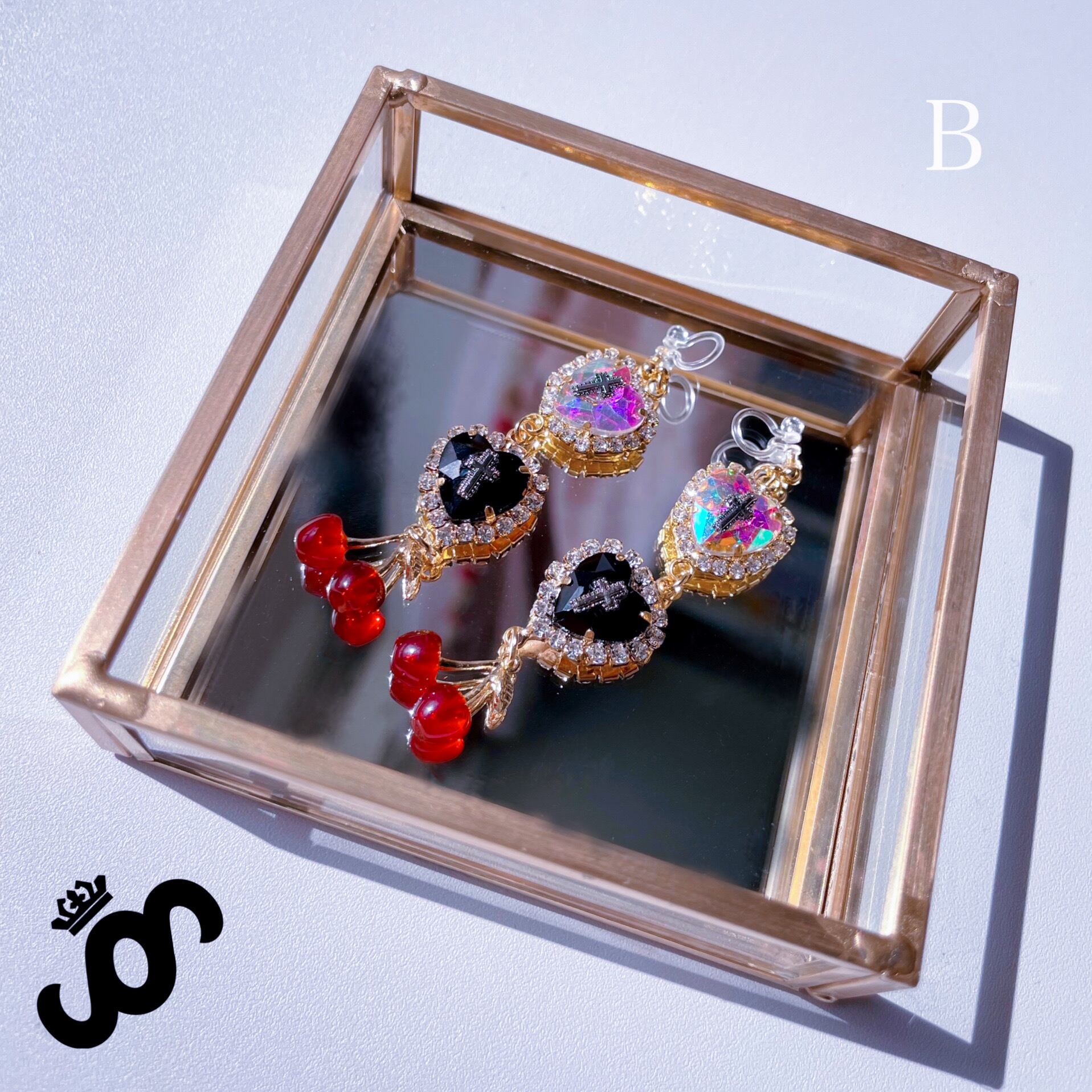 パステル 淡色 透明 ギフト プレゼント オリジナル かわいい 人気 オシャレ 白 ゆめかわ 金 ピンク 赤 ピアス イヤリング ハート イチゴ いちご 十字架 地雷 量産 チェリー さくらんぼ 黒