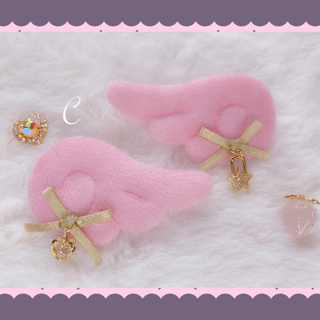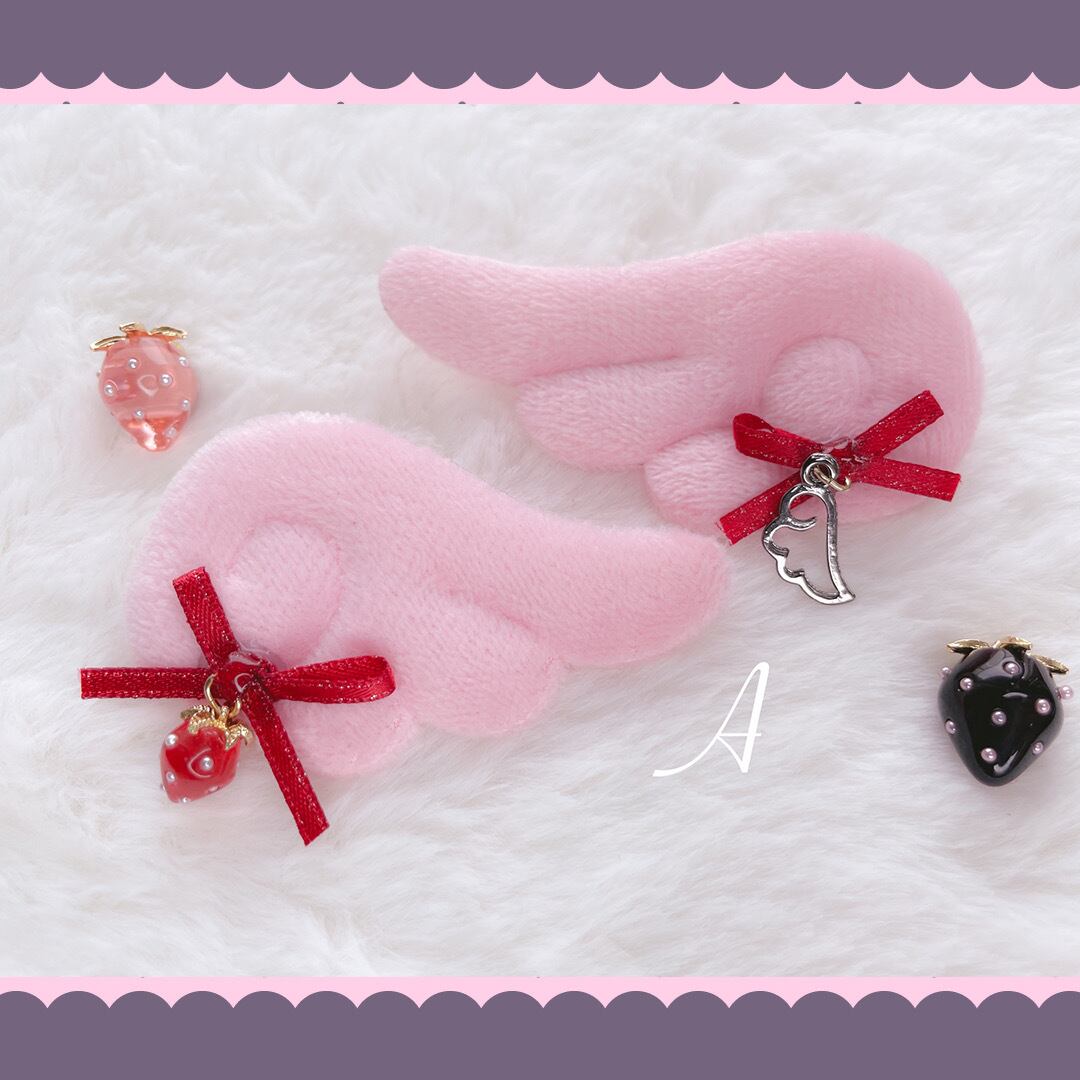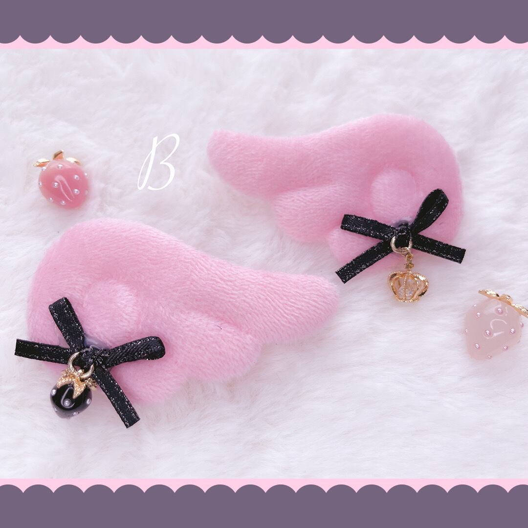 パステル 淡色 透明 ギフト プレゼント オリジナル 地雷 地雷系 かわいい 人気 オシャレゆめかわ ハート 赤 ピンク 黄色 黒 リボン ヘアピン ふわふわ 推しカラー ビジュー 羽 天使 いちご
