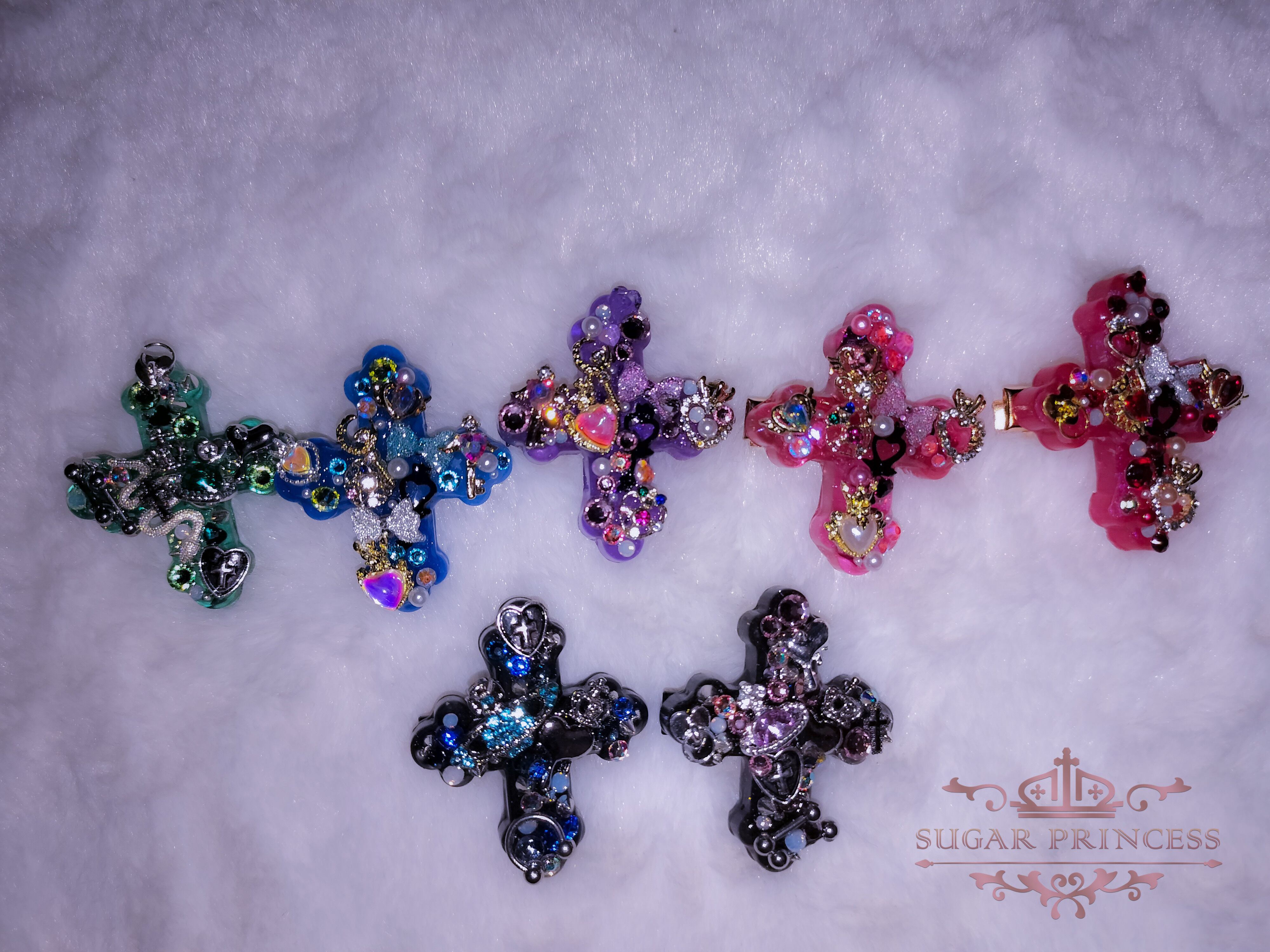 ギフト プレゼント オリジナル 地雷 地雷系 かっこいい 人気 オシャレ 青 緑 水色 紫 スワロフスキー ストーン クリスタル リボン 十字架 土星 ロック ジェンダーレス ピン ヘアピン アイドル 黒