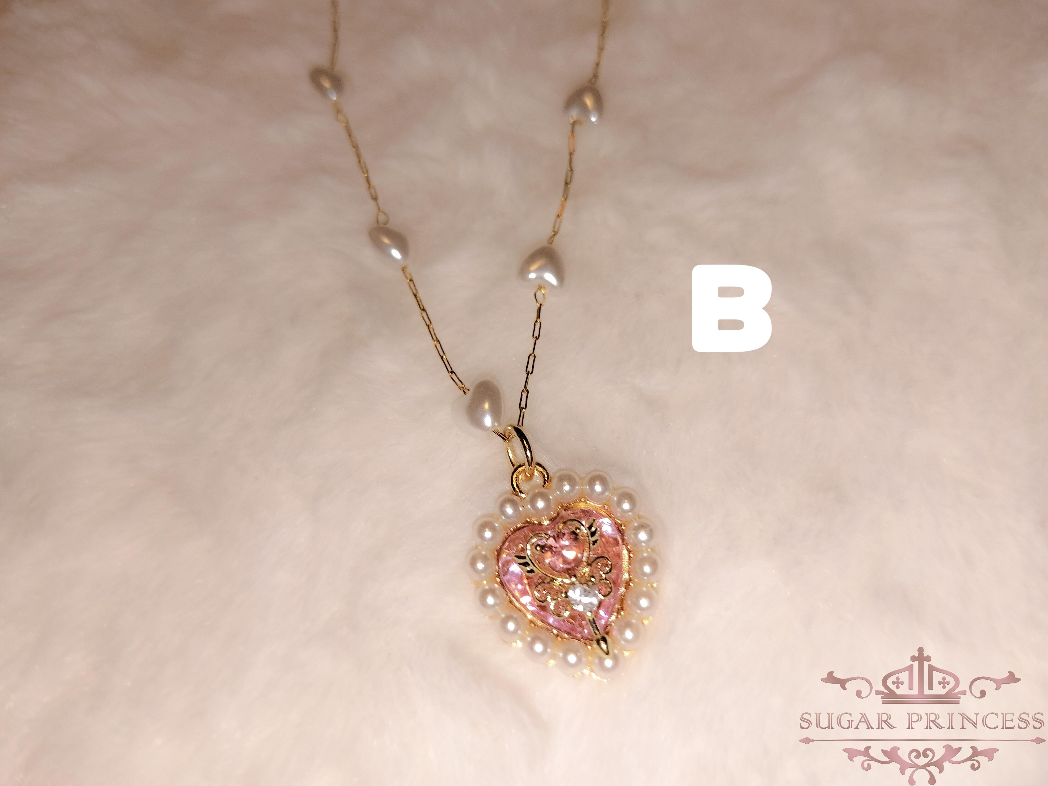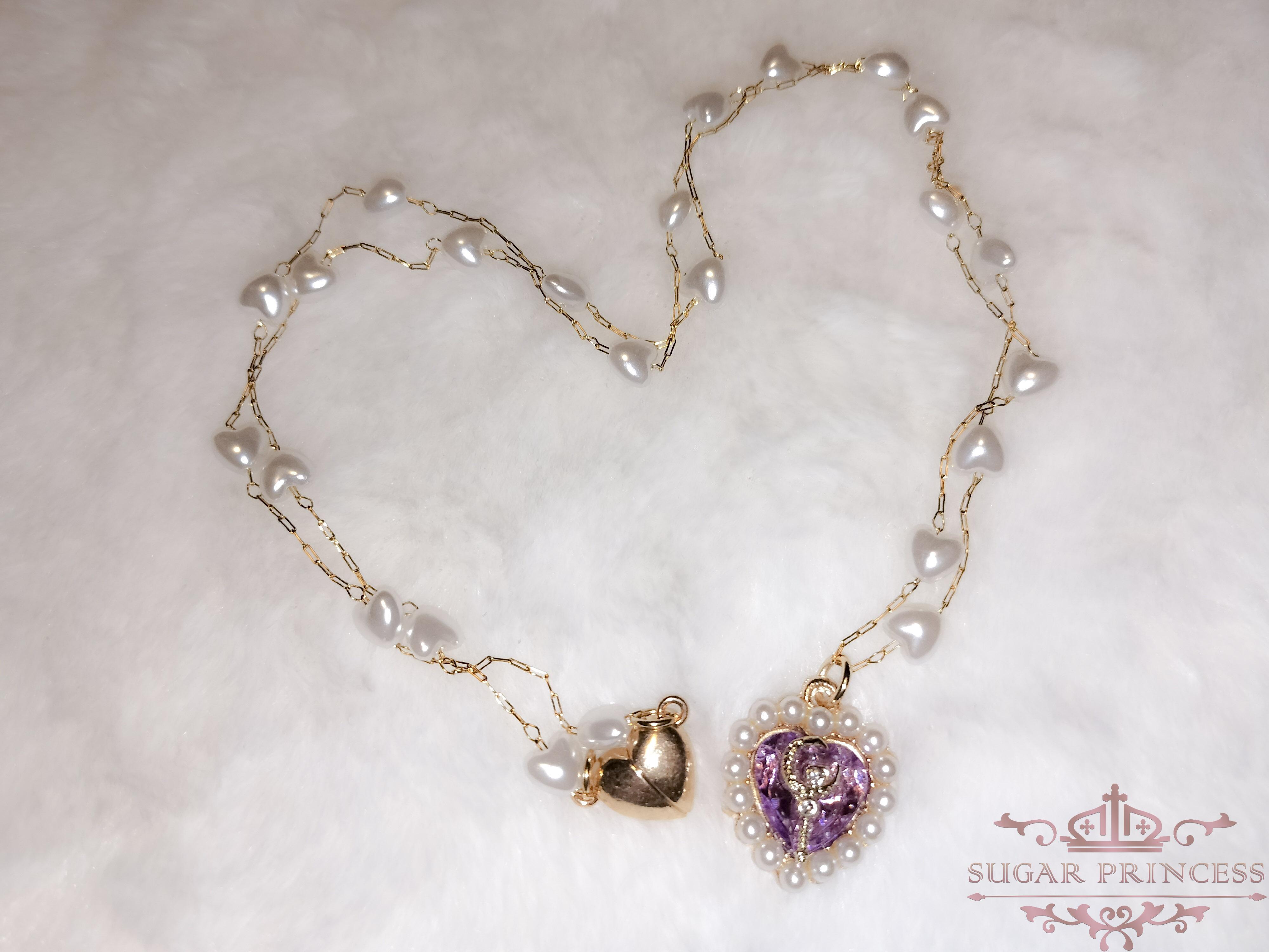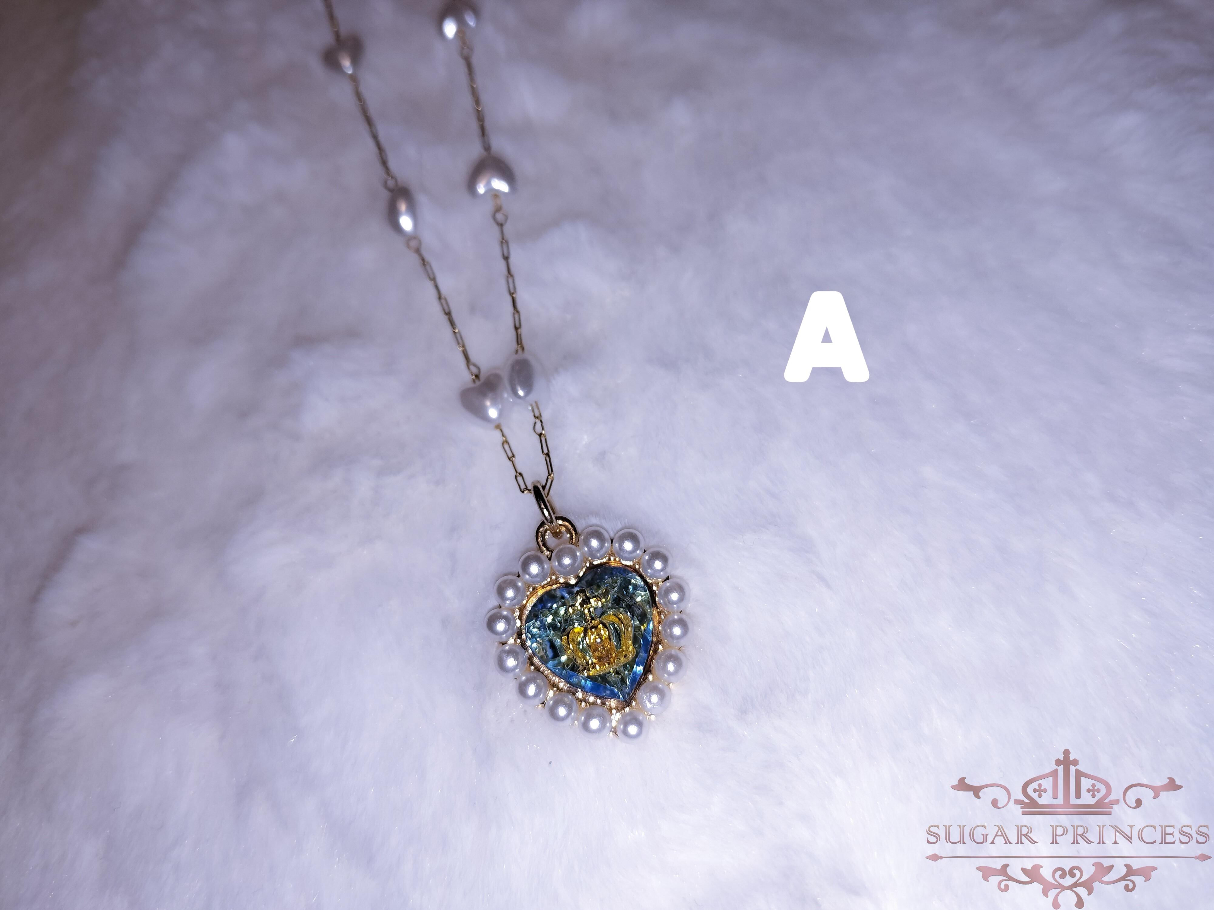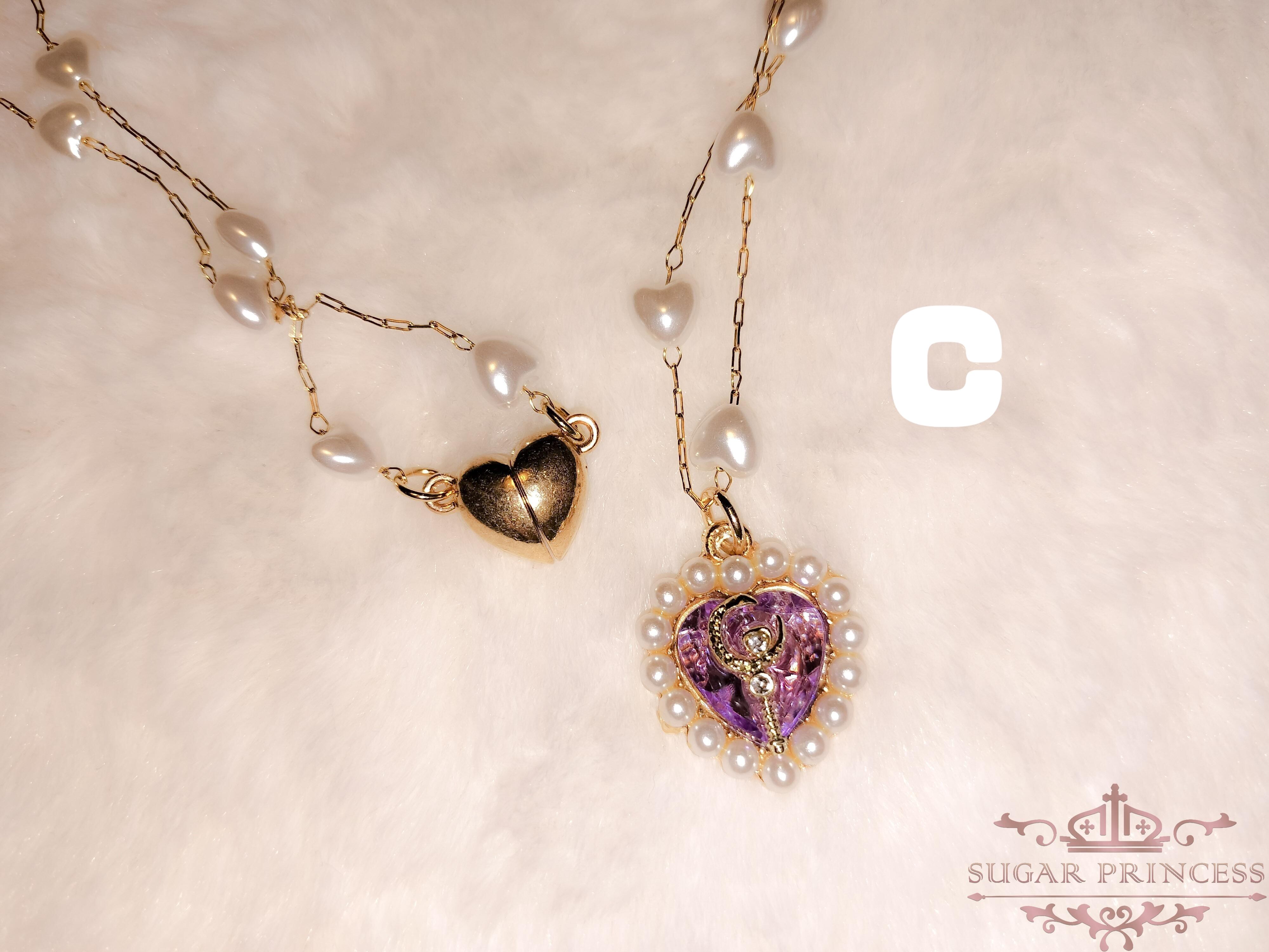 水色 ピンク 紫 ギフト プレゼント オリジナル かわいい 人気 ネックレス 磁石 ハート パール クリスタル